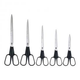 FORBICI CON LAME IN ACCIAIO INOSSIDABILE, LUNGHEZZA 19 CM. COMODA IMPUGNATURA IN ABS. COLORE IMPUGNATURA NERO.