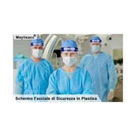 Visiera di protezione trasparente per proteggere occhi e viso, la maschera e' composta da un foglio trasparent...