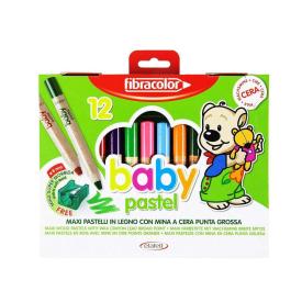 MAXI PASTELLO IN LEGNO CON MINA A CERA. PUNTA GROSSA, SCRITTURA MORBIDA, COLORI VIVACI, FACILI DA USARE E TEMP...