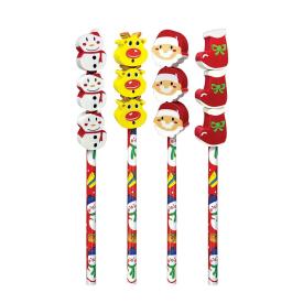 MATITA CON POMPON - BABBO NATALE, PUPAZZO DI NEVE, ALBERO DI NATALE, RENNA