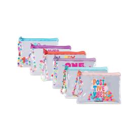 La pochette Soft Bubble Colourbook presenta una chiusura ad 1 zip, un laccetto decorativo e bolle colorate decorative.