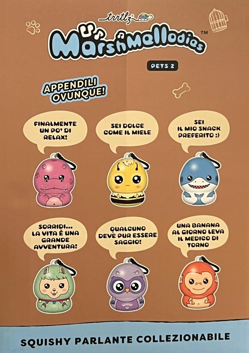 Marshmellodies - Pets seriesSquishy collezionabile con meccanismo sonoro6 Forme Ogni personaggio dice una...